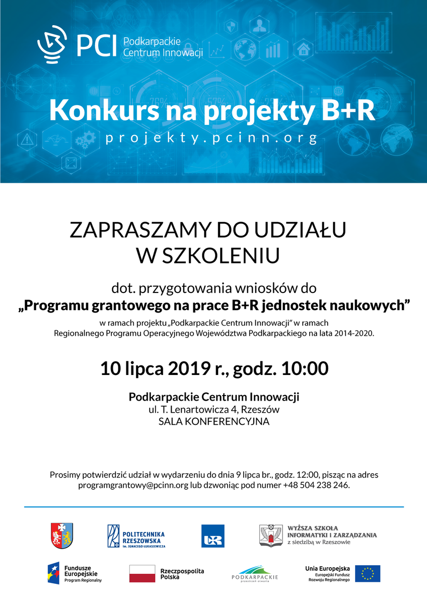 Podkarpackie Centrum Innowacji Spółka z o.o. ogłosiło pierwszy nabór wniosków w ramach „Programu grantowego na prace B+R dla jednostek naukowych”. Politechnika Rzeszowska jest jednym z partnerów projektu. Celem programu jest wsparcie jednostek naukowych w zakresie realizacji prac badawczo-rozwojowych mających na celu powiększenie zasobów wiedzy i zmierzających do tworzenia prototypów oraz innowacyjnych technologii. Projekty będą inicjowane na uczelniach i realizowane przez zespoły naukowe (tzw. etap PoP i PoC). Przedmiotem wsparcia będą prace badawcze o wysokim potencjale komercjalizacyjnym. Nabór wniosków rozpocznie się we wtorek 9 lipca br.