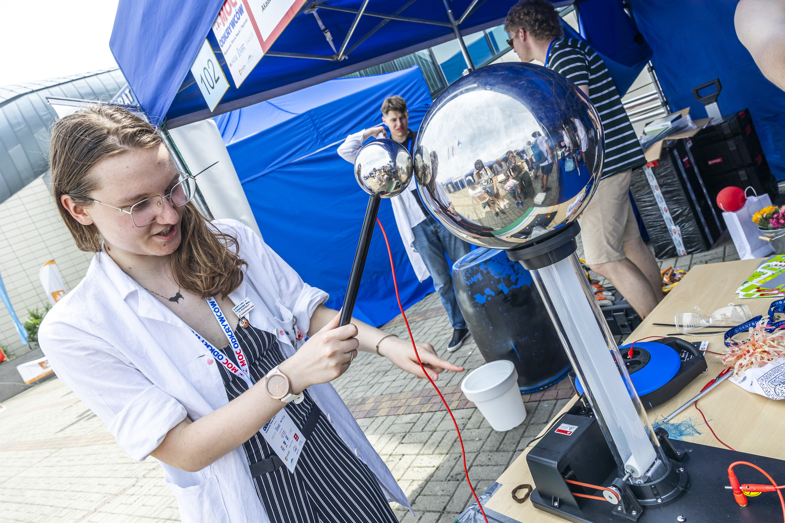 Na miłośników wybuchowych atrakcji czekali studenci Koła Naukowego „ESPRIT”, którzy przygotowali spektakularne pokazy chemiczne. Uczestnicy mogli również wysłuchać ciekawych wykładów –„Kosmiczną archeologię” opisywała Magdalena Ithilnar Stawniak, postać „Wyspiańskiego – Odkrywcy” przybliżyła Jolanta Bobala, a o „Prompt engineering, czyli jak dogadać się ze sztuczną inteligencją?” opowiedział Marcin Krawczyk. Mali i duzi odkrywcy spotkali się również z Magda „Cathia” Kozłowska zabrała małych i dużych odkrywców w podróż po galaktyce w ramach prelekcji nt. „Gwiezdnowojenna droga bohatera, czyli monomit w Gwiezdnych Wojnach”. Pokazy fizyczne Koła Naukowego FOTON („Jak fizyka wprawia świat w ruch”) oraz pokazy wysokich napięć i galeria lamp plazmowych Teslacoil jak zawsze przyciągnęły tłumy widzów. Na „Noc z gwiazdami”, czyli na finałowy pokaz pikniku zaprosili Małgosia Wilczak i Paweł Pasterz wraz z gościem specjalnym Maciejem Milczanowskim.