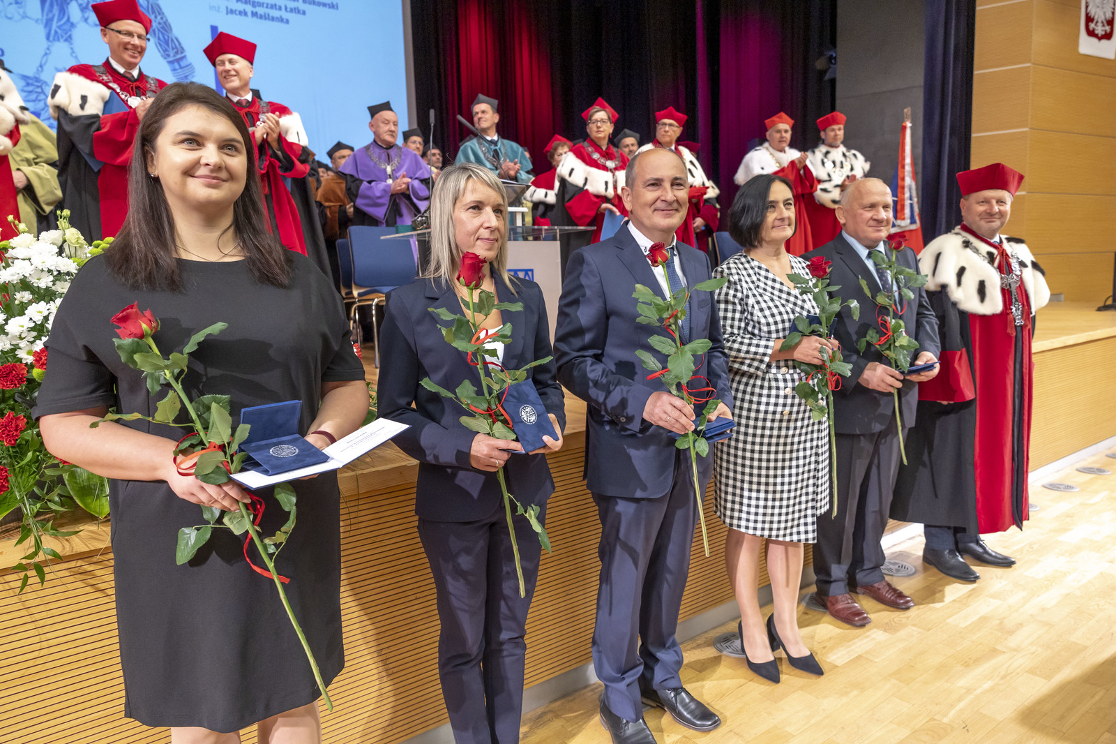 Wręczono również medale „Zasłużonym dla Politechniki Rzeszowskiej”. Wyróżnienie to otrzymali: Małgorzata Kubiś, HR Leader w Deloitte CE Business Services Center Sp.z o.o., w uznaniu zasług dla rozwoju Politechniki Rzeszowskiej, mgr Aneta Borecka-Śpiewla, prof. dr hab. inż. Wiktor Bukowski, dr inż. Małgorzata Łatka, inż. Jacek Maślanka. Tę uroczystości poprowadził prorektor ds. studenckich prof. dr hab. Grzegorz Ostasz.