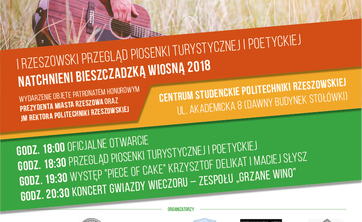 Stowarzyszenie „Natchnieni Bieszczadem” w Cisnej 26 kwietnia organizuje na Politechnice Rzeszowskiej I Podkarpacki przegląd piosenki turystycznej i poetyckiej „Natchnieni Bieszczadzką Wiosną 2018”.