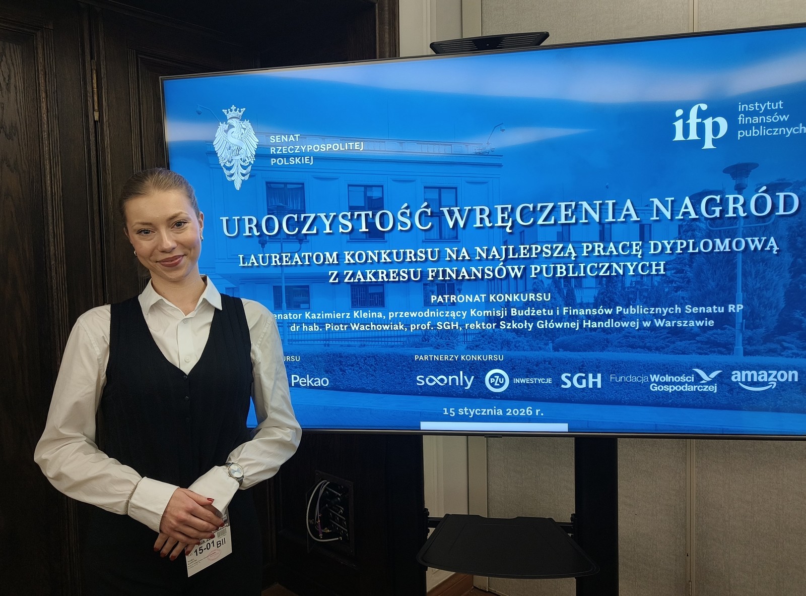 Maria Kaszuba, studentka I roku studiów magisterskich na kierunku finanse i rachunkowość na Wydziale Zarządzania została wyróżniona w II edycji Konkursu Instytutu Finansów Publicznych na najlepszą pracę dyplomową z zakresu finansów publicznych.