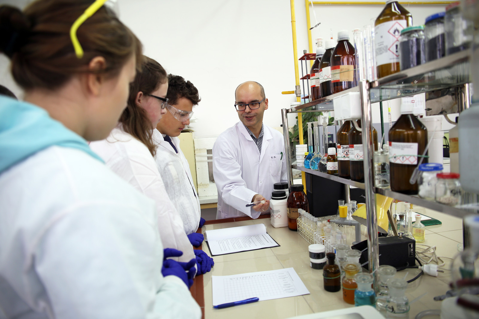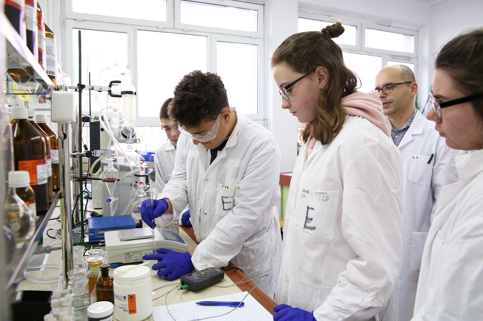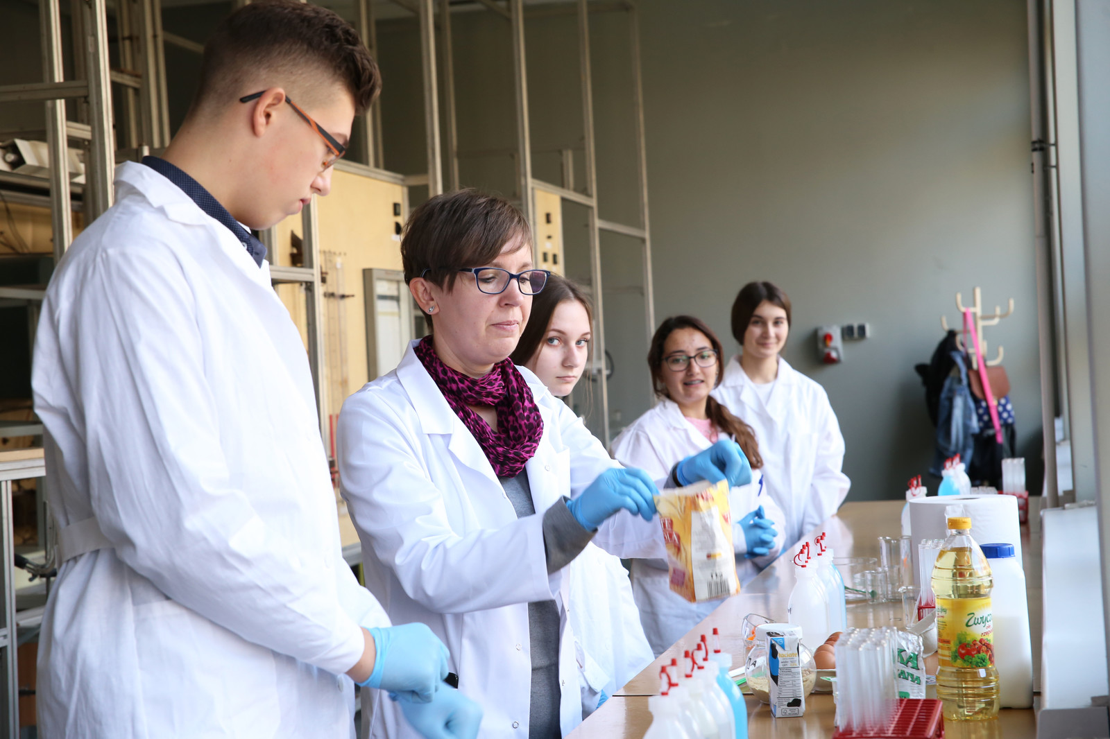- Zajęcia w ramach Szkoły Młodych Chemików to ogromne przedsięwzięcie logistyczne, w które zaangażowanych jest 13 nauczycieli akademickich – trenerów, którzy prowadzą zajęcia laboratoryjne z niewielkimi, 5-osobowymi grupami uczniów. Praca w tak małych grupach pozwala im na samodzielne wykonywanie eksperymentów pod fachowym i uważnym okiem trenera – mówi dr inż. Dorota Głowacz-Czerwonka, prodziekan ds. ogólnych i koordynator projektu z ramienia Wydziału Chemicznego.